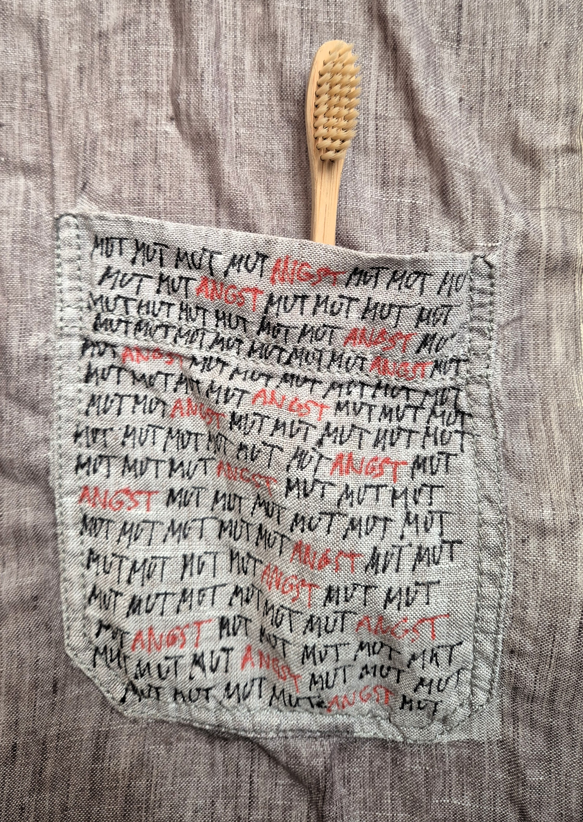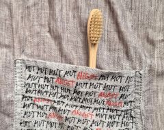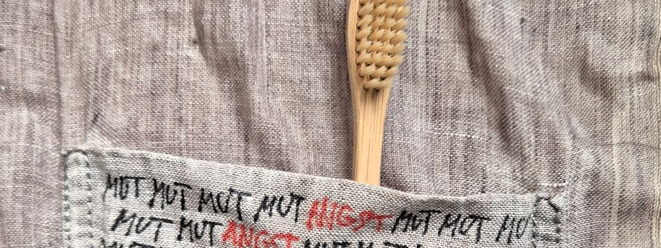 „MUTANGST“ - Das Kunstwerk zeigt die Zahnbürste, die der Vater der Künstlerin nach dem Vorbild Martin Luther Kings stets bei sich trug, um sich auf eine mögliche Verhaftung vorzubereiten