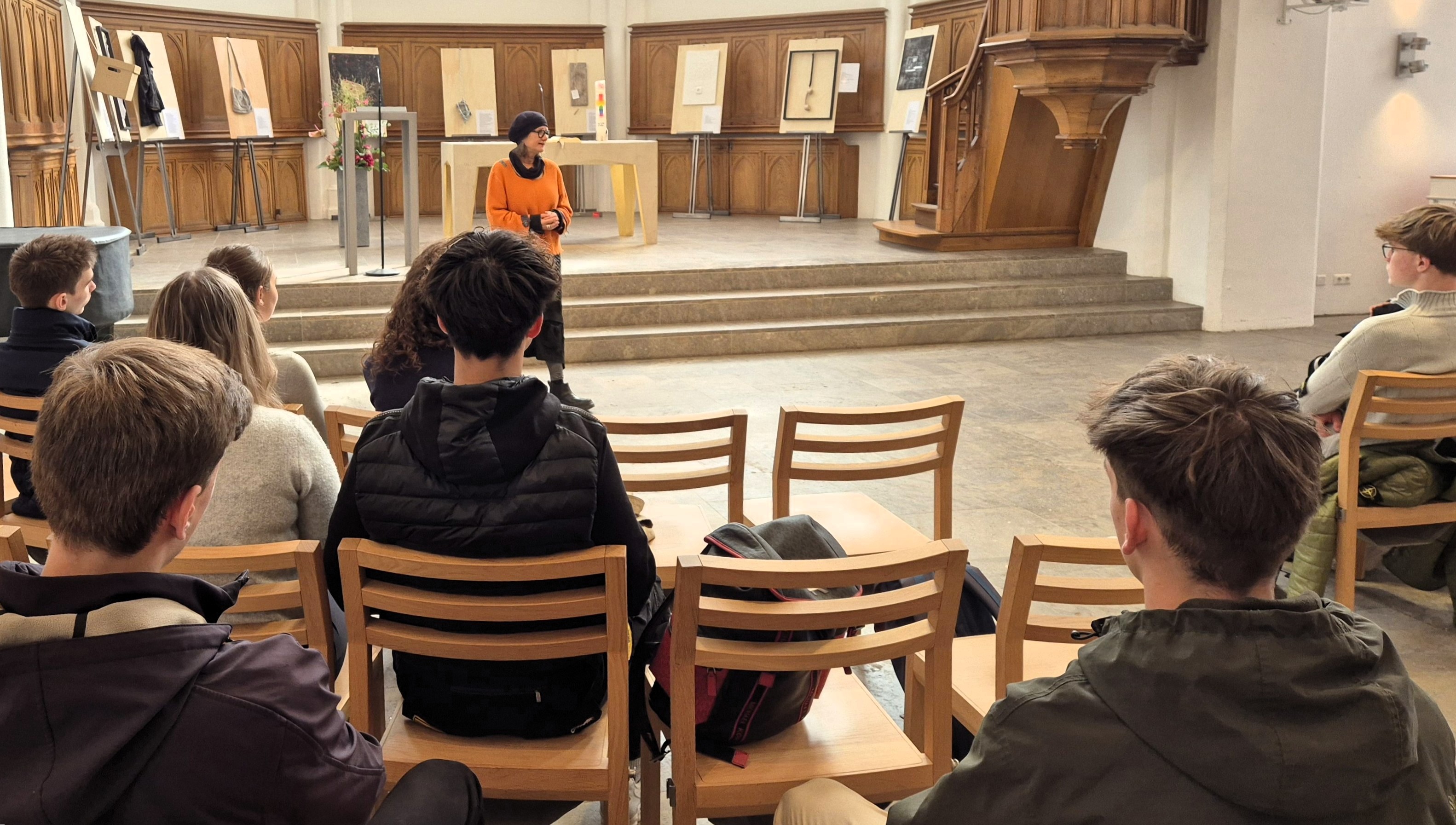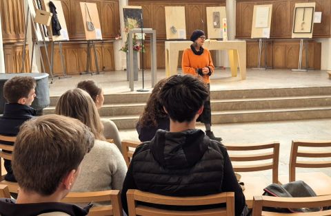 Am 2. Oktober 2025 hatte ein Geschichtskurs der Einführungsphase die besondere Gelegenheit, die Ausstellung „Verwundete Zeit“ von Deborah Marschner in der Evangelischen Stadtkirche zu besuchen. Der Besuch, kurz vor dem Tag der Deutschen Einheit, bot den Schülerinnen und Schülern einen intensiven Einblick in das Leben während der DDR-Diktatur und regte zur Reflexion über die Bedeutung von Freiheit und Demokratie in der heutigen Zeit an.