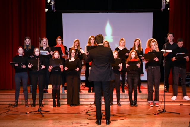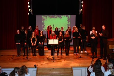 Der Mittel- und Oberstufenchor wünscht mit klangschönem Gesang „…A Merry Merry Christmas“ ... -