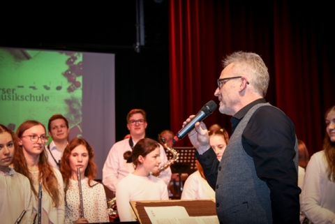 Schulleiter Thorsten Klag dankt allen Ausführenden und ihren Lehrer*innen bzw. Dirigent*innen -