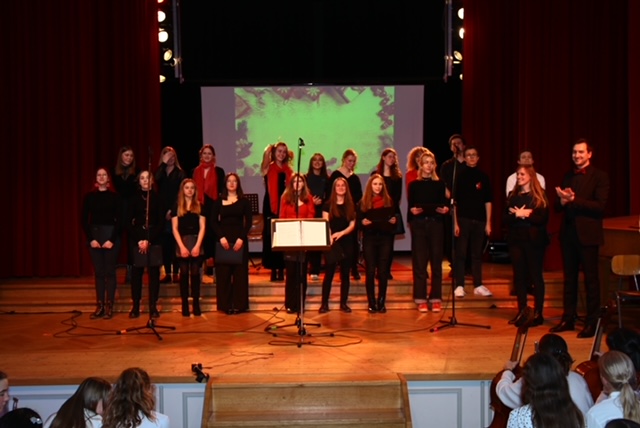 Nach 3 Jahren waren Aula und Bühne endlich wieder voll und mit großer Freude wurde gesungen und gespielt. Obwohl diesmal die Schulband nicht dabei war, da sie demnaechst einen eigenen Abend gestaltet, waren über 100 Schülerinnen und Schüler aus den beiden Chören, der JungenSinfonieMoers und dem Blasorchester „Wood‘n‘Brass“ mit großem Einsatz und tollen Beiträgen dabei. Das Repertoire reichte von der Barockzeit mit Antonio Vivaldi bis Michael Jackson, von afrikanischer Folklore bis Filmmusik. Wie eindrucksvoll die Darbietungen waren, kann man an der Bildergalerie und dem Videozusammenschnitt sehen. Viel Vergnügen!