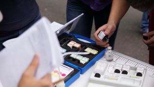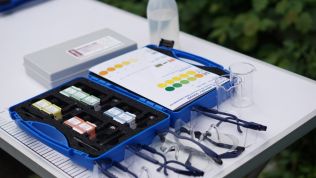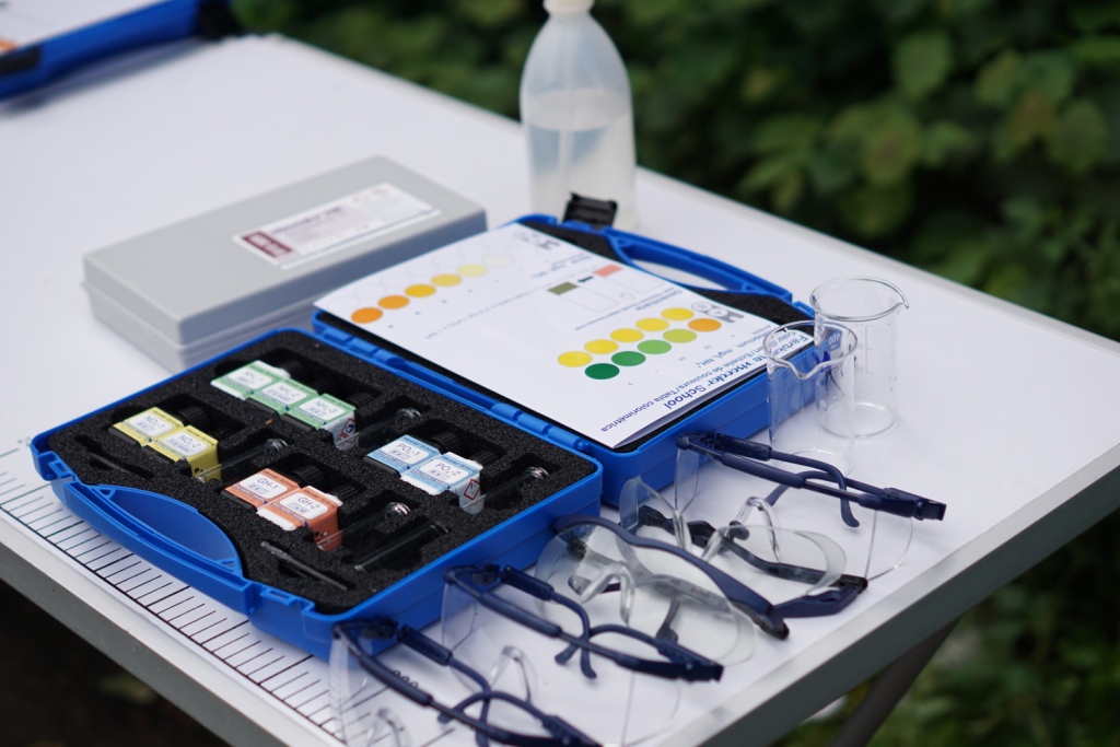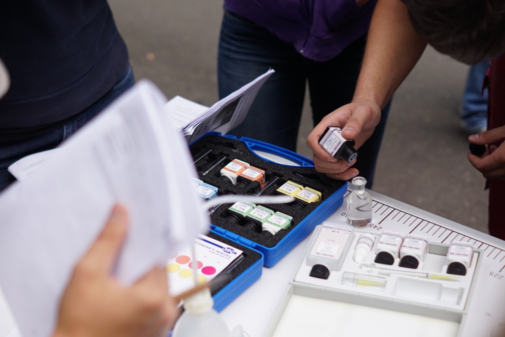Gewässer- und Sichttiefe, Temperatur, Trübung, Farbe, Geruch – diese Parameter wurden an der physikalischen Station erfasst, die von den Physik- und Chemielehrern Andreas Lind und Patrick Schubert betreut wurde. Dabei kamen auch GLX-Explorer zum Einsatz, kleine Handcomputer mit moderner Messsensorik, um möglichst genaue Messungen der Trübung oder der Wasserfarbe vornehmen zu können. Auch die elektrische Leitfähigkeit des Wassers wurde auf diesem Weg bestimmt, so dass ein erster Eindruck des Gehalts an gelösten Ionen im Wasser gewonnen werden konnte. Vertieft wurden diese Messungen durch Experimente an der chemischen Station. Die Chemielehrer Sven Tenhaven und Tobias Packenius unterstützen die Schülerinnen und Schüler bei der Untersuchung verschiedener Ionenkonzentrationen wie Nitrat-, Phosphat- oder Ammonium-Ionen. Doch auch hier zeigte sich: Die Niers ist gesund und hat durchaus eine gute Wasserqualität in Willich-Neersen vorzuweisen.