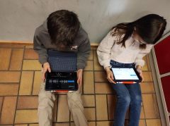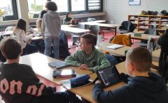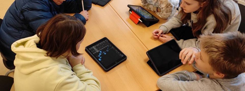 Zum Schluss hin wurde die Zeit bei fast allen Gruppen sehr knapp und einige hatten nur noch fünf Minuten zum Zuschneiden. Am Ende musste sich jede Gruppe ein anderes anhören und es bewerten. Leider konnte nur das Hörspiel der Gruppe von Julia, Emilie, Tim, Nino und Sana vorgestellt und bewertet werden. Zuhause hat dann jeder alle Hörspiele angehört und für seinen Favoriten abgestimmt.