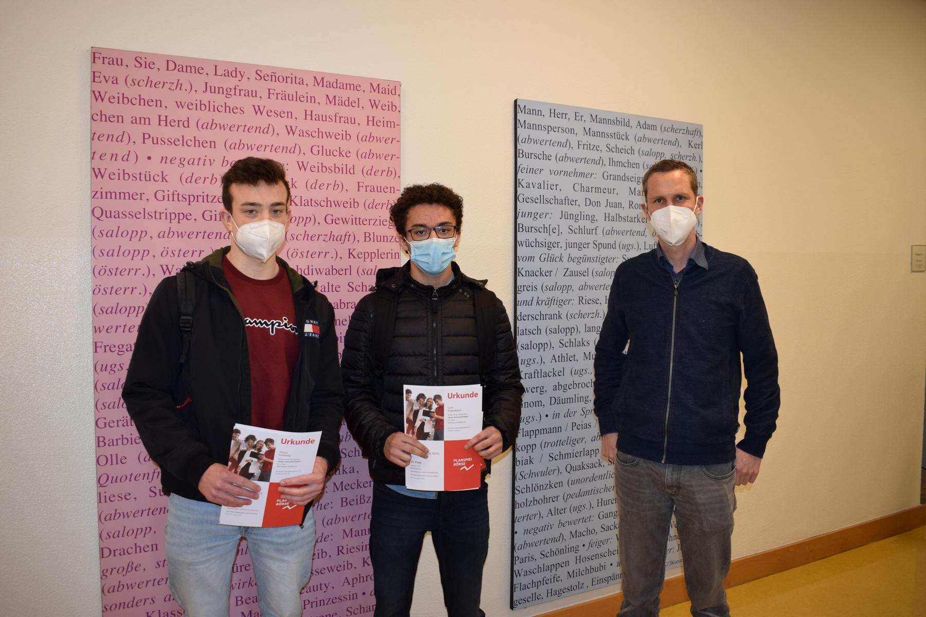 Die Schüler Timo Kohlmann und Clemens Palinsky (beide Q2) landeten auf dem 4. Platz und die Schülerinnen Zoe Vukovic und Cora Schmidt (beide Q1) auf dem 8. Platz. Alle konnten sich über ein dreistelliges Preisgeld freuen.
