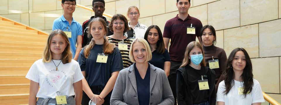 Nachdem die Gruppe mit zehn Schülerinnen und Schülern den Landtag betreten hatte, begann das Informationsprogramm des Besucherdienstes mit Führung und Besuch des Plenarsaals.