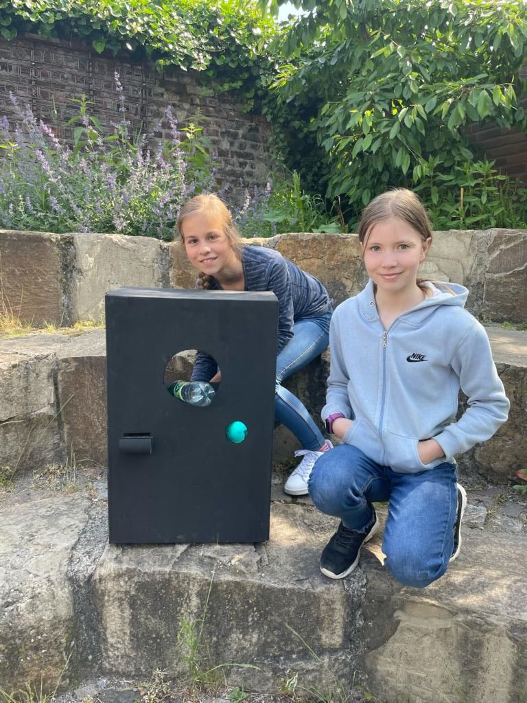 Dabei gab es Modelle des Waldes und Meeres zu bewundern und mit Hilfe eines großen, selbst gebastelten Pfandautomaten wurden die verschiedenen Pfandsysteme erklärt. Um zu überprüfen, ob die Zuschauerinnen und Zuschauer auch aufmerksam dem Vortrag gelauscht haben, wurden verschiedene Formen der Überprüfung wie zum Beispiel ein selbst erstelltes Kahoot-Quiz gewählt.