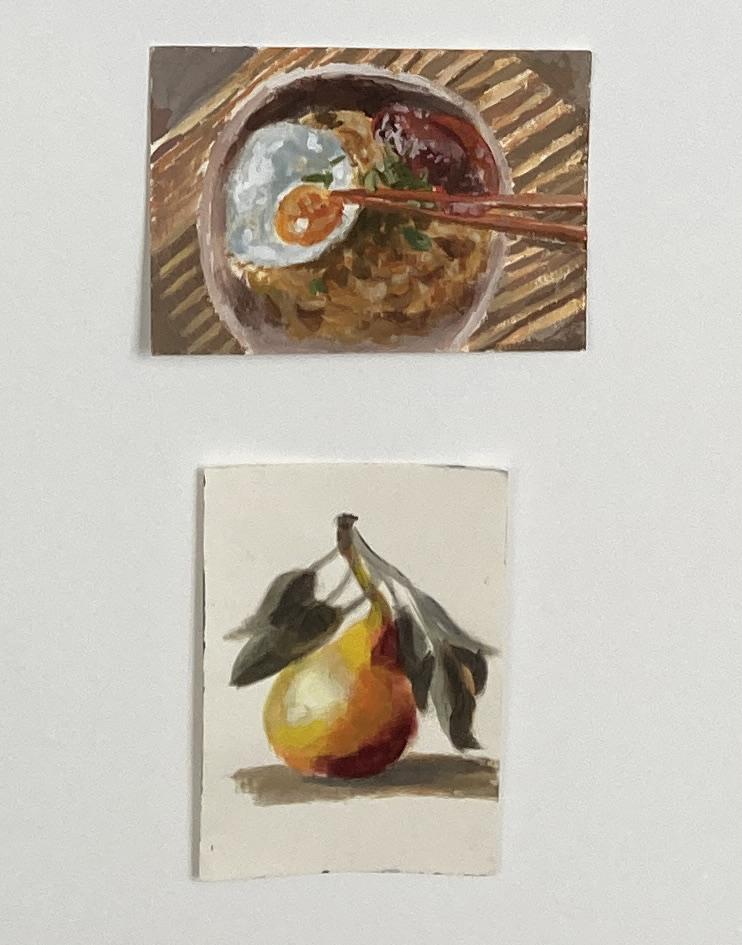 Flirrend in der Wirkung und schnell gepinselt sind auch die Momentaufnahmen von Silvia Geistmann, die sich in ihren Bildern für alles interessiert was ihr in den Blick kommt, vom Blumentopf bis zum Spiegelei.