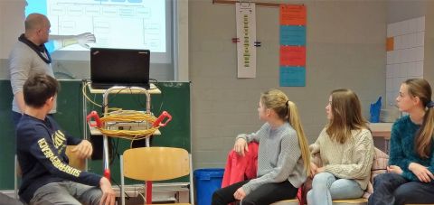 Insgesamt war die Stunde für die Schülerinnen und Schüler informativ und anschaulich. Die vielen Nachfragen zeugten von dem positiven Eindruck, den Christoph Olders auf die Schüler machte.