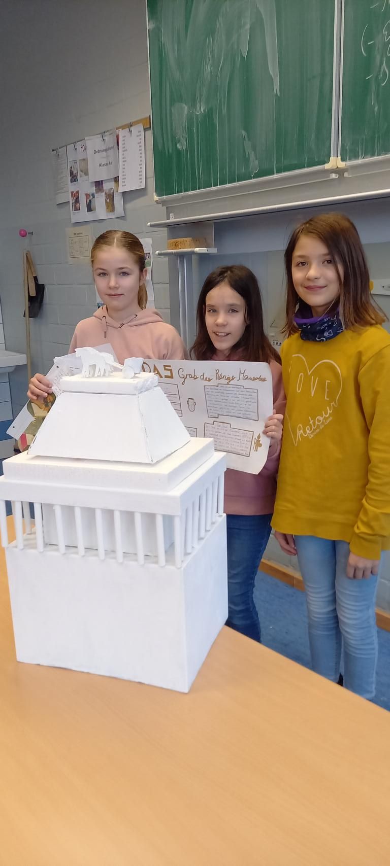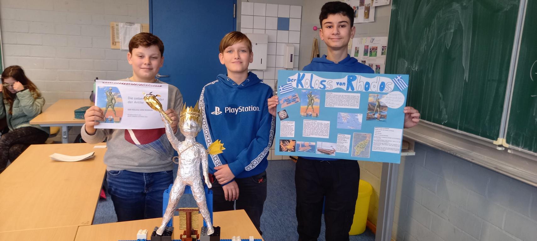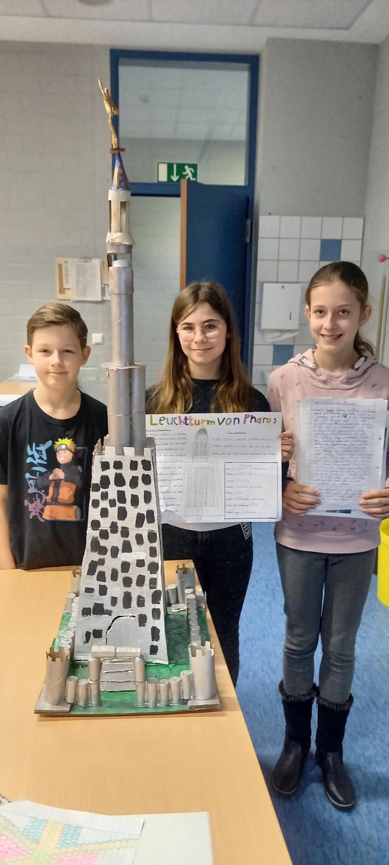 Im Geschichtsunterricht der Klasse 6e standen zum Ende des 1. Halbjahres die sieben antiken Weltwunder im Fokus. Die Schülerinnen und Schüler haben nicht nur Vorträge vorbereitet, um ihre Mitschülerinnen und Mitschüler zu informieren, sondern auch beeindruckende Modelle angefertigt, die sich wirklich sehen lassen können. Die abschließende Bildergalerie zeigt die stolzen Schülerinnen und Schüler sowie ihre kreativen Plakate und detailgetreuen Modelle. Matteo Kaiser und Emil Zimmer haben zudem einen Bericht über dieses Projekt verfasst.