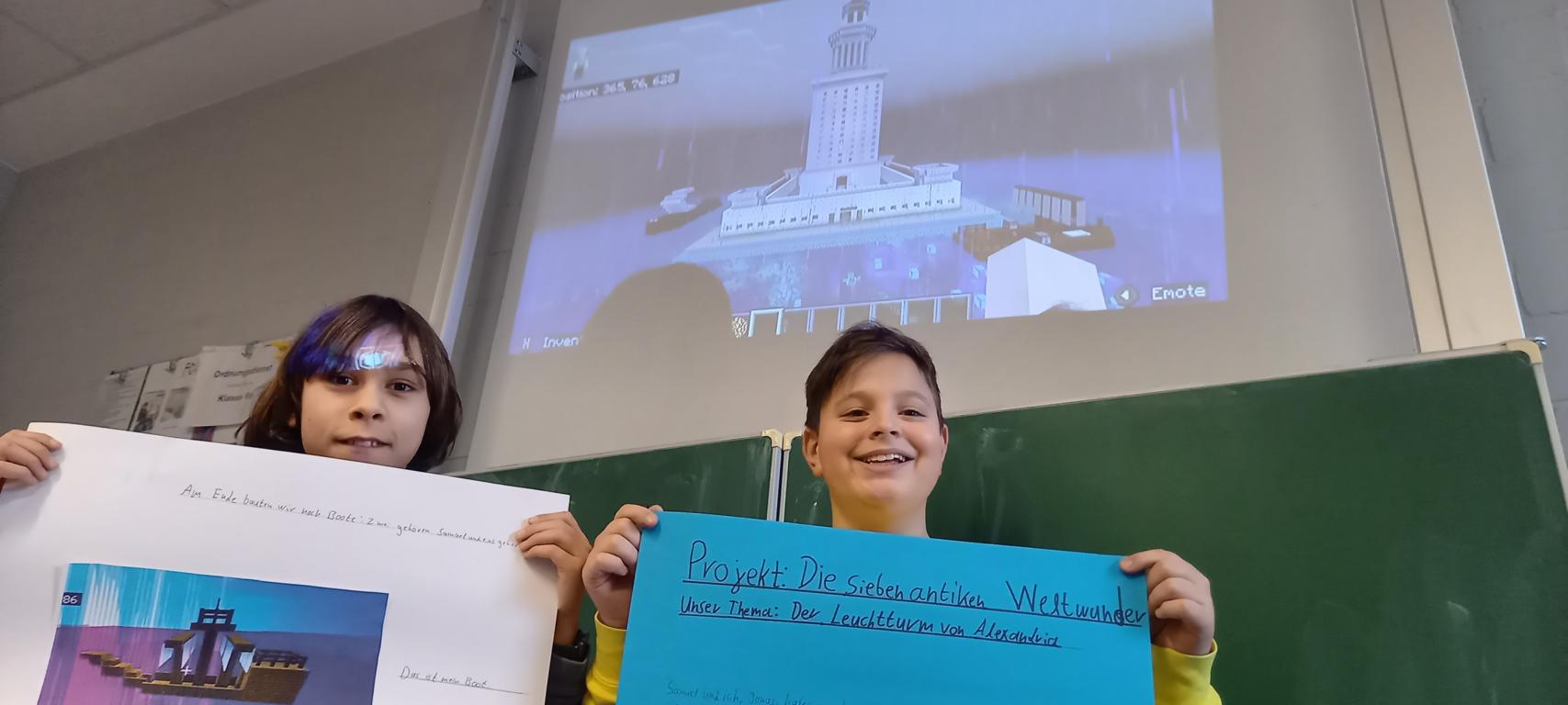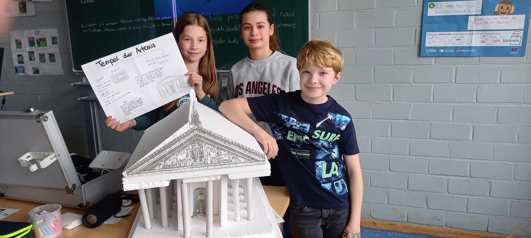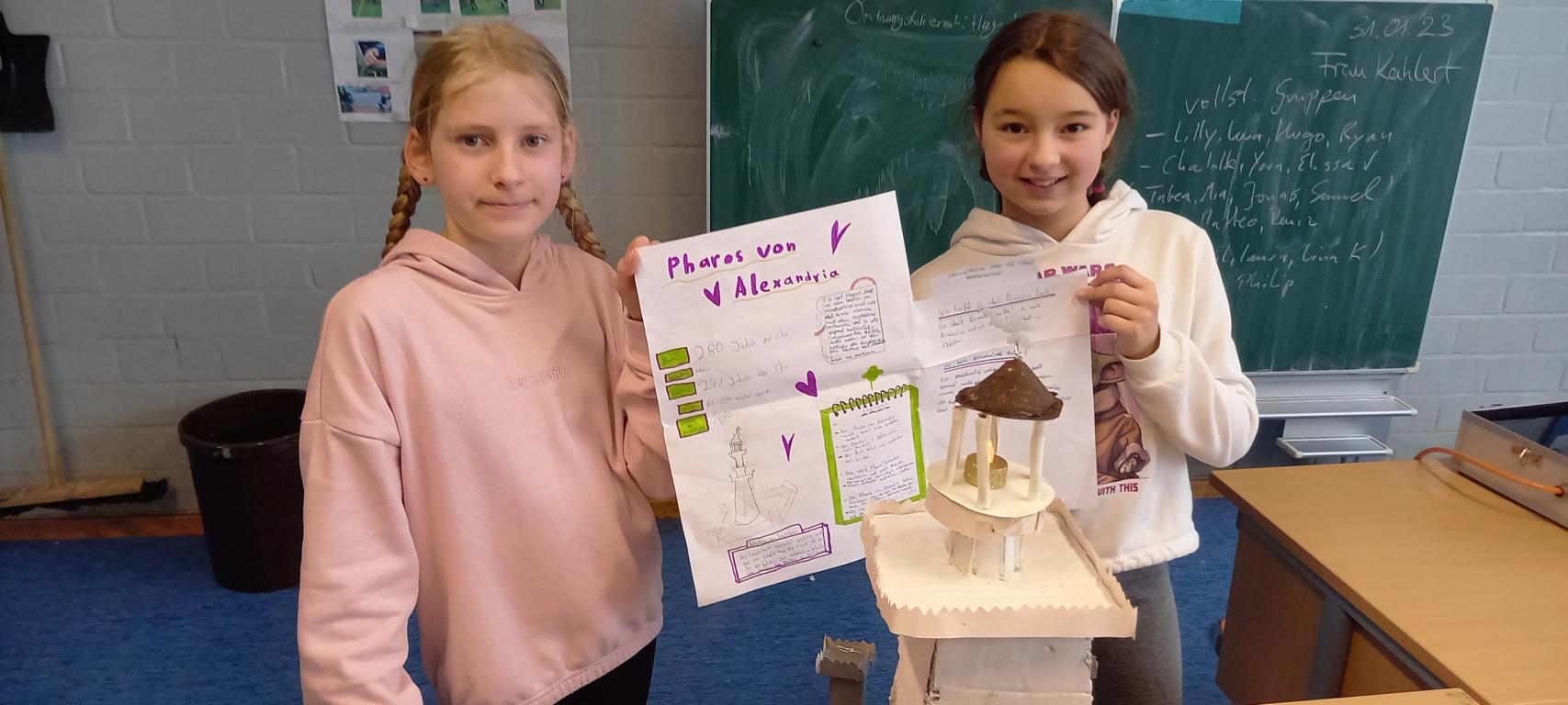 Im Geschichtsunterricht der Klasse 6e standen zum Ende des 1. Halbjahres die sieben antiken Weltwunder im Fokus. Die Schülerinnen und Schüler haben nicht nur Vorträge vorbereitet, um ihre Mitschülerinnen und Mitschüler zu informieren, sondern auch beeindruckende Modelle angefertigt, die sich wirklich sehen lassen können. Die abschließende Bildergalerie zeigt die stolzen Schülerinnen und Schüler sowie ihre kreativen Plakate und detailgetreuen Modelle. Matteo Kaiser und Emil Zimmer haben zudem einen Bericht über dieses Projekt verfasst.