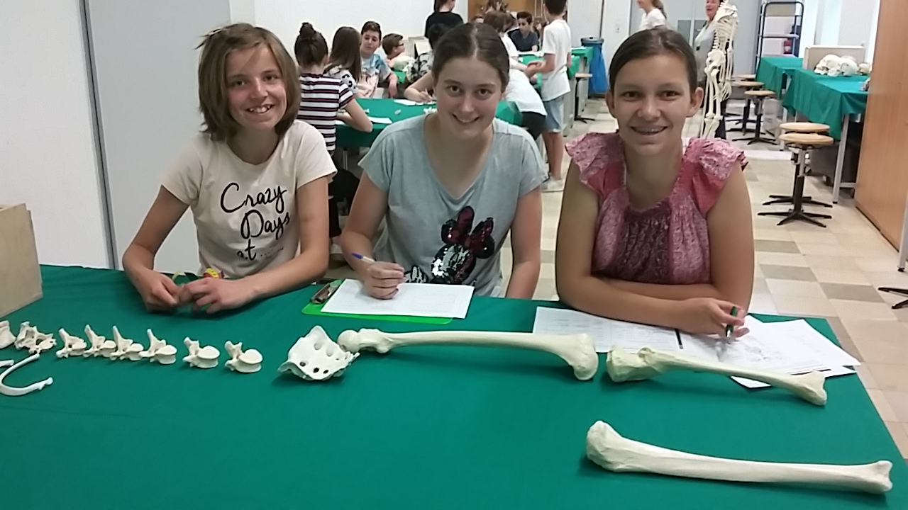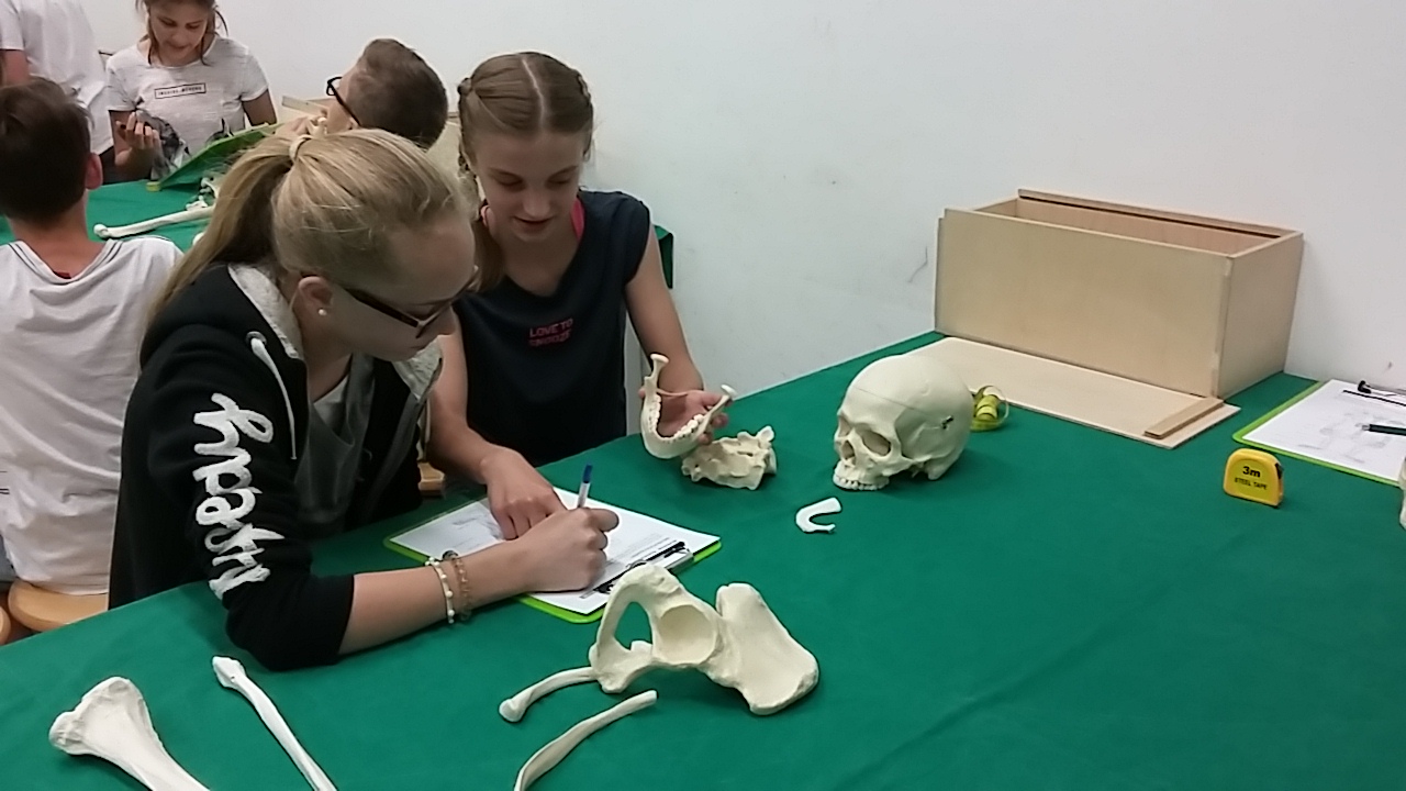 Nach anfänglicher Scheu bei einigen, mit den Skelett-Teilen zu hantieren, waren bald alle voll bei der Sache „ihren Fall“ zu lösen. Dazu war „Puzzle-Arbeit“ und ein genauer Vergleich von Knochenstrukturen sowie Kenntnisse zu Unterschieden im Skelettaufbau und Männern und Frauen und unterschiedlichen Konstitutionen und Altersklassen nötig. Insgesamt lieferten die Schülerinnen und Schüler eine tolle Arbeit und trugen so zu einer gelungenen Veranstaltung bei.
