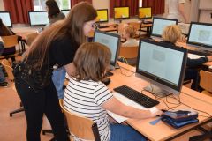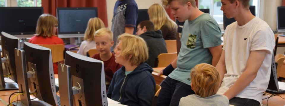 Elf junge Medienguides aus der Jahrgangsstufe 9 und der Oberstufe unserer Schule empfingen Anfang Juni zwei Klassen der Kooperationsgrundschule im Rahmen des Projektes „Zukunftsschulen NRW“. Die Grundschüler konnten erfahren und ausprobieren, wie man Texte in Word so formatiert, dass man sie auch gut lesen kann. Im WhatsApp-Modul wurde der richtige Umgang mit diesem Kommunikationsmedium besprochen und auf Gefahren altersgerecht hingewiesen.