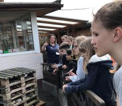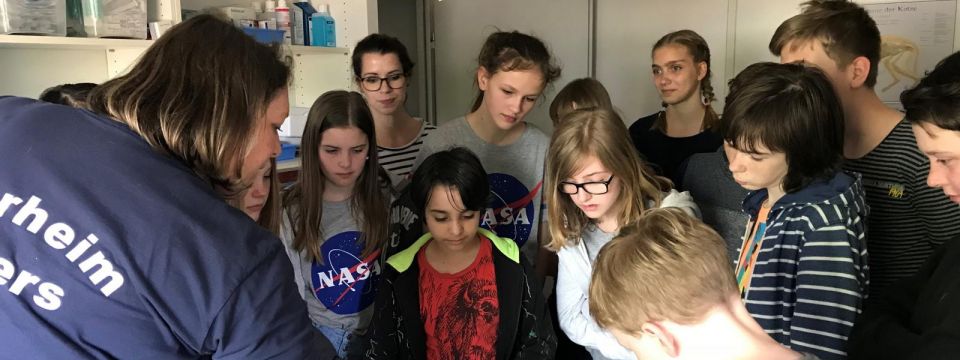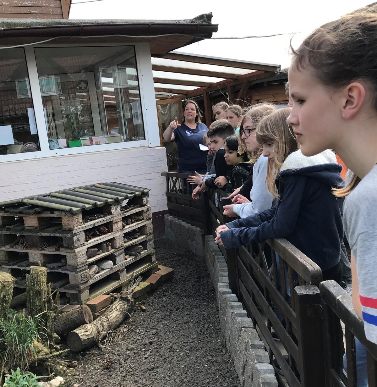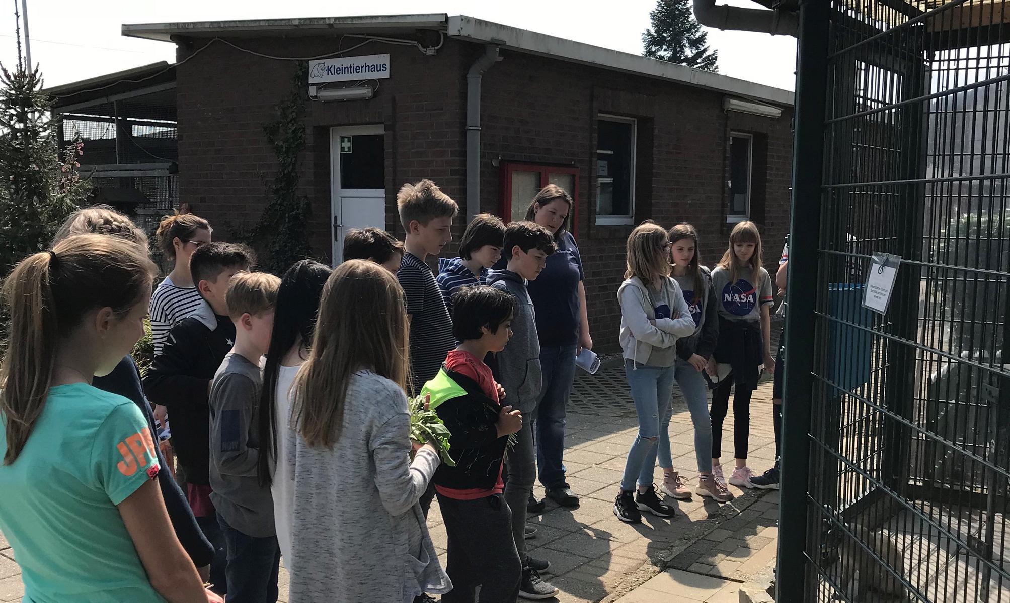 Gemeinsam erkundend: Die AG "Gute Taten" auf ihrer Stippvisite im Tierhiem.