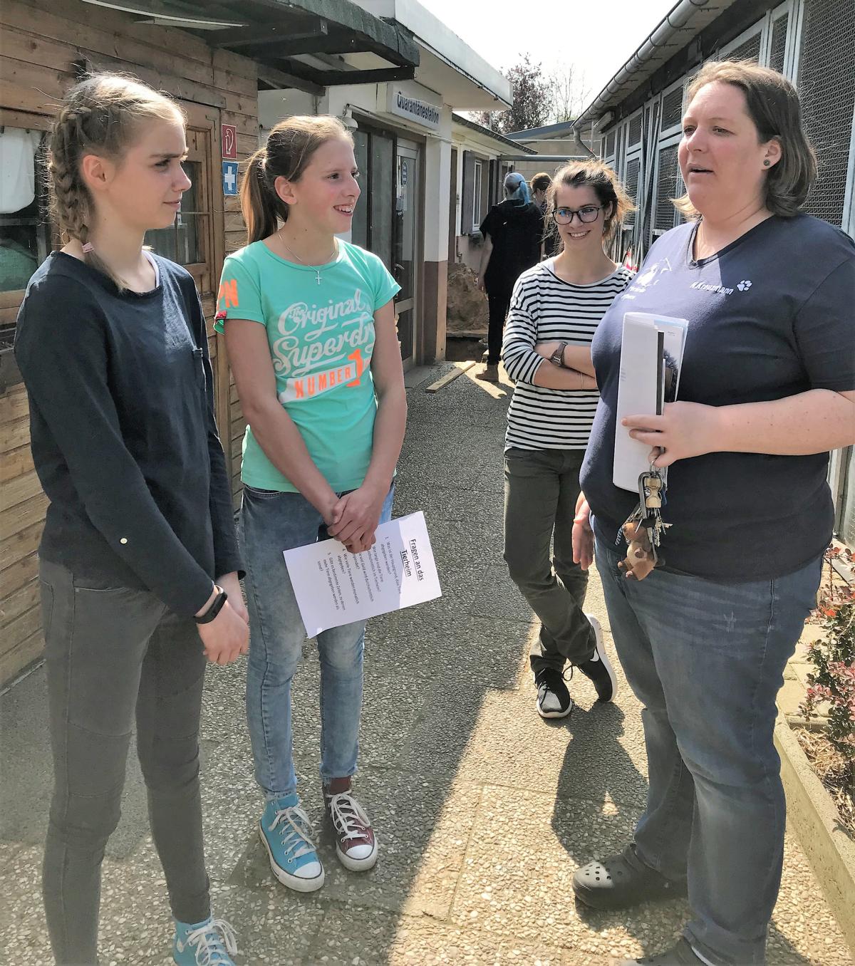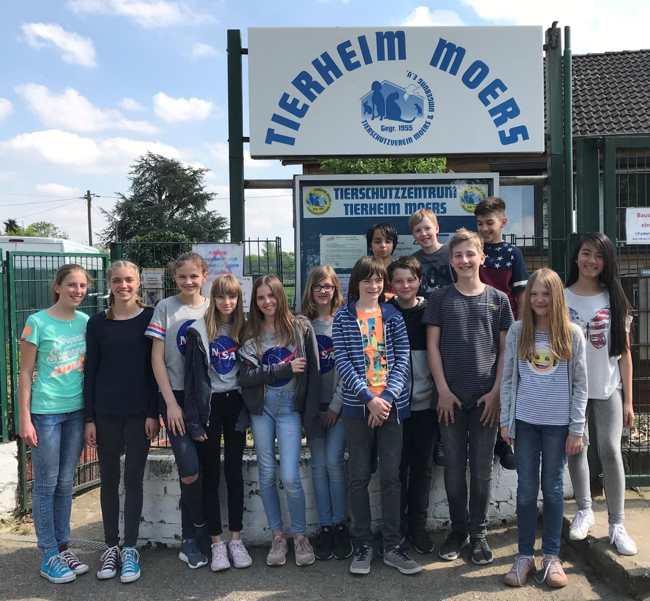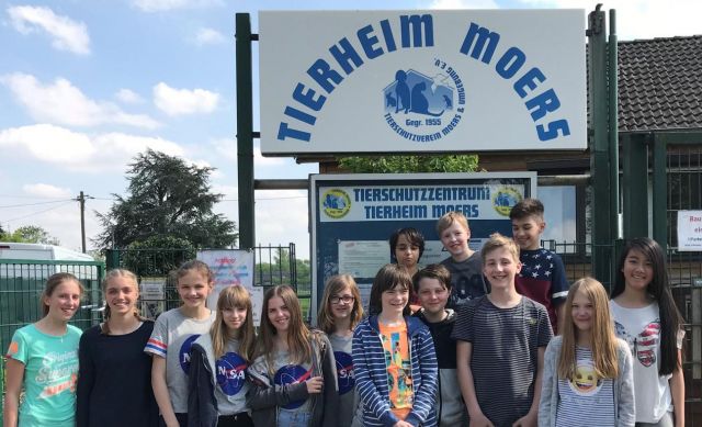 Schon von der ersten Sitzung an war es allen Mitgliedern der AG „Gute Taten" ein großes Anliegen, gemeinsam ein Tierheim zu besuchen um mehr über die Bewohner und die Arbeit dort zu erfahren. „Wir möchten herausfinden, wie wir das Tierheim als Kinder und Jugendliche unterstützen können“, so Jule Wriggers aus der 7d. Voller Spannung machten sich die Schülerinnen und Schüler zusammen mit Mareike Samp und Sandra Hennemann auf zum Tierheim Moers.