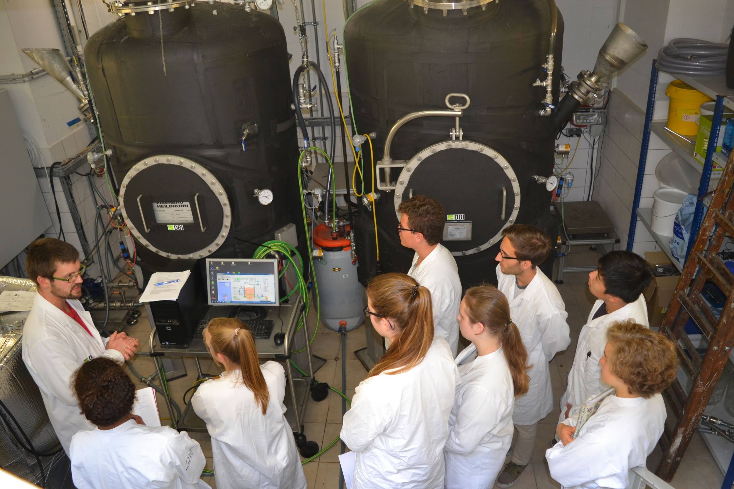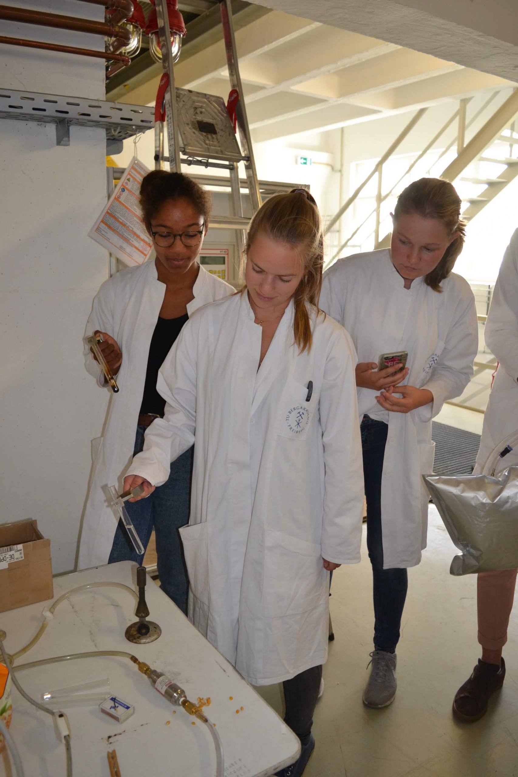Am Montag sind wir, die knapp zwanzig Teilnehmerinnen und Teilnehmer aus ganz Deutschland, angereist und haben nach dem Beziehen unserer gemütlichen Pensionszimmer zwei nette Professoren der TU Bergakademie Freiberg kennengelernt, die dann je eine Einführungsvorlesung zur Thematik gehalten haben. Das Programm am Dienstag und Mittwoch war jeweils so strukturiert, dass wir vormittags Vorlesungen hatten und nachmittags das neu erworbene Wissen in Experimenten anwenden konnten. Am Dienstag haben wir gelernt, wie „Wind zu Strom“ wird und dabei einige physikalische Aspekte thematisiert. Am Mittwoch wurde dann erarbeitet, wie man „Strom zu Gas“ umwandeln kann, wobei die Chemie und Biologie eine große Rolle spielten. Dementsprechend hat mir das Programm am Mittwoch besonders gut gefallen, da wir interessante Experimente zur biologischen Methanisierung im DBI (Deutsches Brennstoff-Institut) durchführen durften. Am Donnerstag folgte dann ein Highlight: Die Exkursionen. Wir besuchten zuerst eine Firma, die Windräder baut und anschließend eine Biogasanlage der Stadt Dresden. Zum Abschluss der Woche hielten wir Teilnehmerinnen und Teilnehmer am Freitag jeweils in Kleingruppen Präsentationen zu ausgewählten Themen der Woche. Meine Gruppe hat sich beispielsweise mit dem Thema Strömungsvisualisierung und Druckmessung auseinander gesetzt.