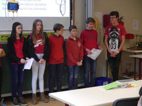 Teamwork: die Präsentation des Forschungsauftrages unter den Augen der Jury.