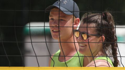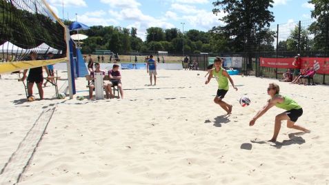 Gegner hier das Bessel-Gymnasium Minden: Schon im letzten Jahr war man aufeinandergetroffen,  damals allerdings im Halbfinale, mit dem besseren Ende für Minden. Das Szenario des letztjährigen Halbfinales sollte sich leider wiederholen. Klare Niederlage für die Mädchen, deutlicher Sieg für die Jungen. So weit, so gut. Somit hing das Ticket nach Berlin vom Ergebnis des Mixed-Spiels ab. Leider mit ein paar Fehlern zu viel aus Moerser Sicht: mit 13:15 und 12:15 mussten sich Veit Bils und Amelie Löhndorf denkbar knapp geschlagen geben. Riesenjubel auf der Mindener, große Enttäuschung auf der Moerser Seite. Für einen Großteil des Moerser Teams war damit altersbedingt (die Spielerinnen und Spieler der Jahrgänge 2002 starteten nach vier Jahren Schulbeachvolleyball das letzte Mal für das Adolfinum) die letzte Chance auf das Bundesfinale vertan. Somit zweiter Platz, die beste Platzierung der letzten Jahre. Dies war unmittelbar nach Spielende allerdings nur ein schwacher Trost.