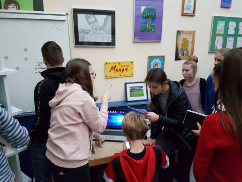 Handy- und Computernutzung ausdrücklich erwünscht: die Klasse 9c beim Lösen des Escape-Games.