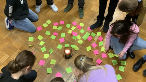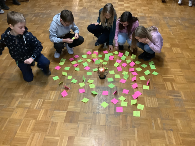 Am ersten Mittwoch nach den Ferien gestalteten wir, der evangelische Religionskurs der Klassen 5a und 5d, die erste Morgenandacht des Jahres 2025. Unter dem Motto „Wünsche und Ziele für 2025“ luden wir unsere Mitschülerinnen und Mitschüler ein, gemeinsam über das neue Jahr nachzudenken. Viele Fünft- und Sechstklässler kamen zusammen, um einen Morgen voller Musik, Austausch und Inspiration zu erleben.