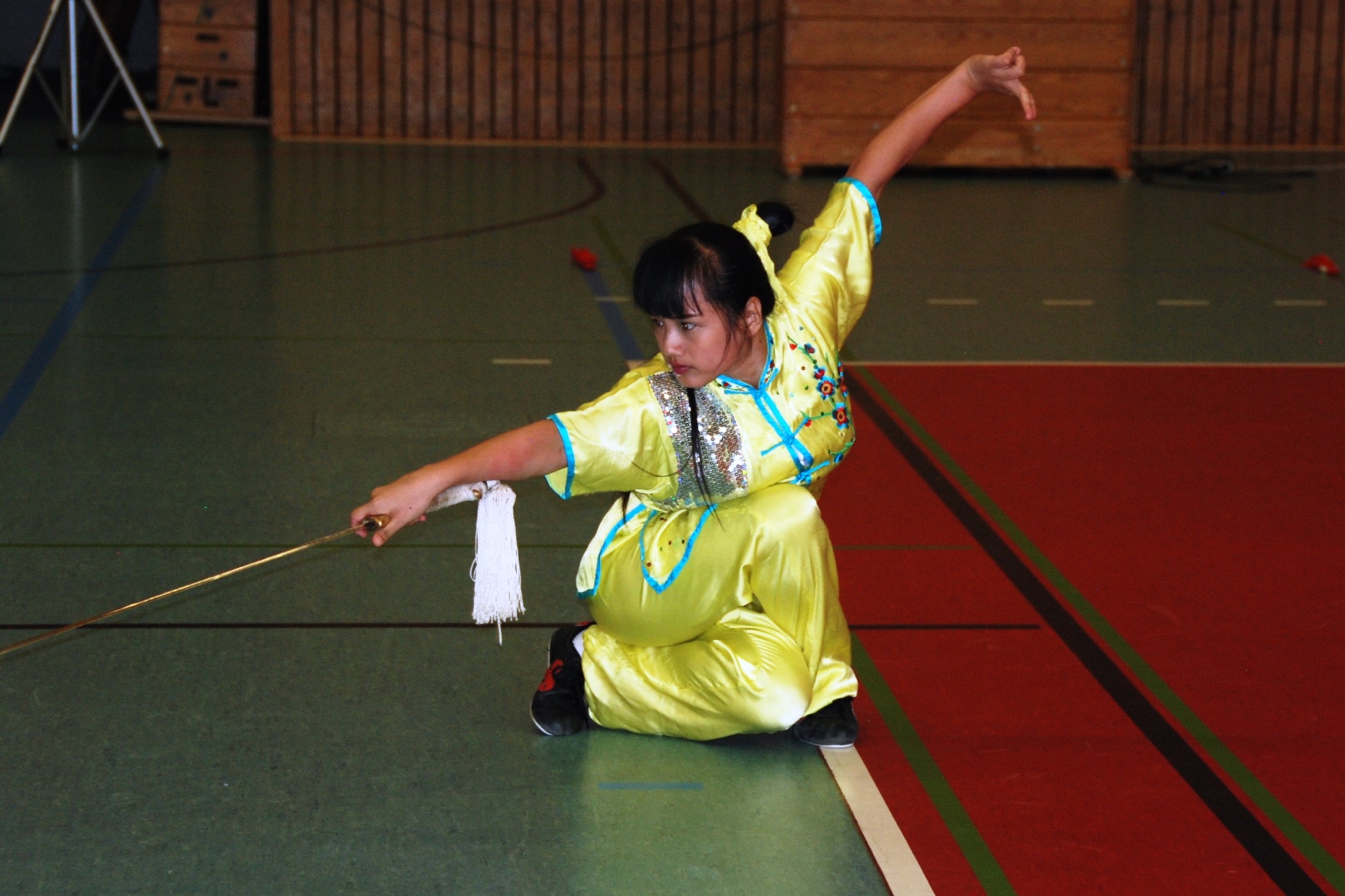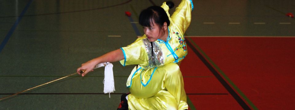 Der Begriff Wushu umfasst unterschiedliche chinesische Kampfkunstarten, die außerhalb Chinas oft vereinfacht als Kung Fu bezeichnet werden. Verschiedene Stile und Techniken des Tai-Chi, Schwertkampfes und mehr dienen nicht nur der Verteidigung und dem sportlichen Wettkampf, vielmehr zielen all diese Kampfkunstformen immer auch auf einen gesunden Körper und Geist ab. Für beide Aspekte steht sinnbildlich das Yin-Yang-Symbol.