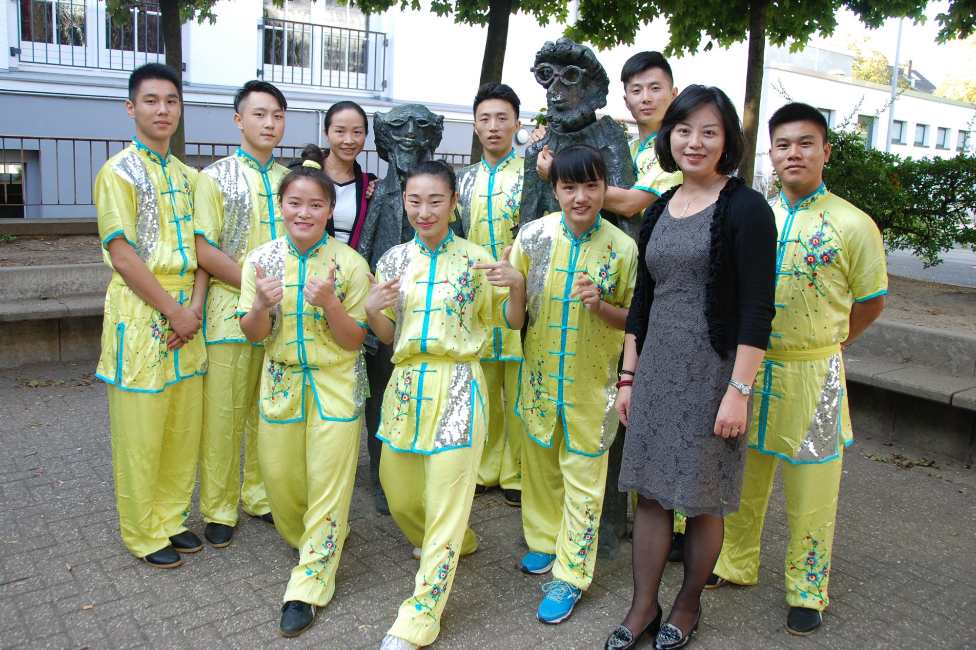 Am 21. September 2016 gab es in der Halle Adolfinum chinesische Kampfkunst zu bestaunen: Die Wushu-Truppe der Technischen Universität (TU) Wuhan präsentierte in der gut gefüllten Sporthalle verschiedene Kampfkunstformen - vom Gruppensäbelkampf über Vorführungen mit Schwertern bis hin zu Tai-Chi mit Fächern. Die Veranstaltungen war Teil der Kooperation des Adolfinums mit dem Konfuzius-Institut der Universität Duisburg-Essen.