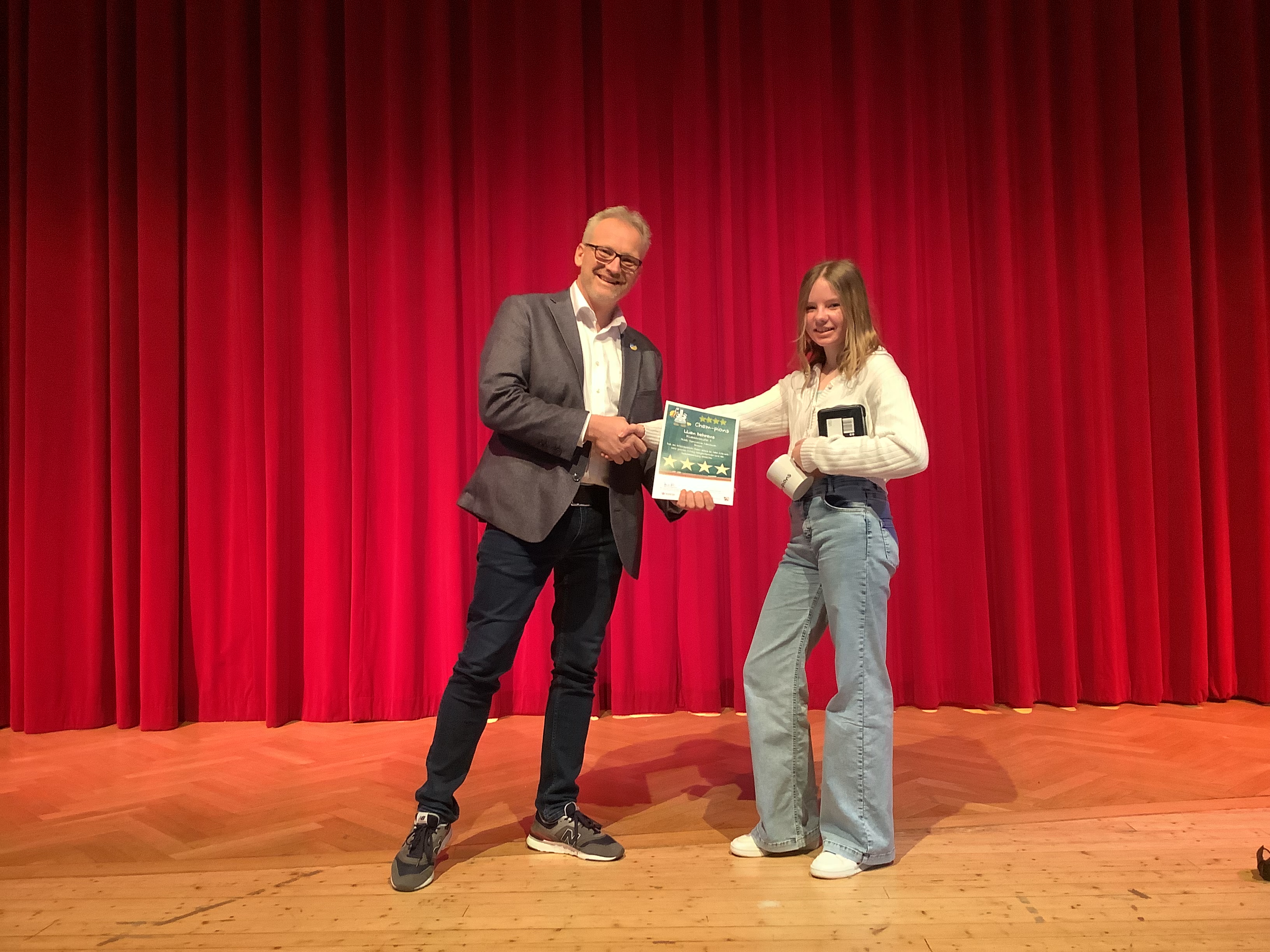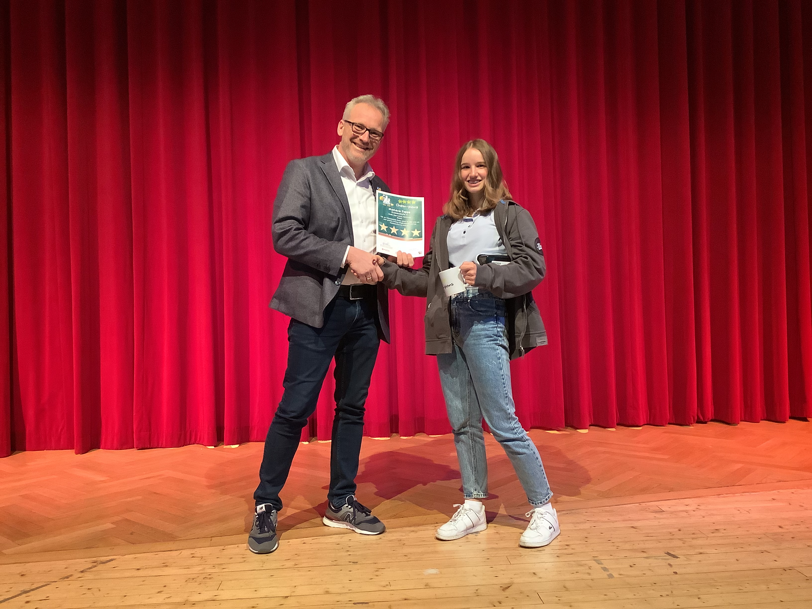 In diesem Schuljahr stand das Thema "Zauberhaftes Leuchten" im Mittelpunkt des Landeswettbewerbes "Chem-pions". Mit Hilfe faszinierender Phänomene sollte das Interesse an chemischen Themen geweckt werden - drei Adolfinnerinnen und ein Adolfiner waren hier mit besonderem Einsatz dabei. Dafür wurden Lilien Behrens (Klasse 7d), Emily Zimmer (Klasse 8c), Marlene Pappe (Klasse 9d) und Magnus Kindermann (Klasse 6c) nun ausgezeichnet.