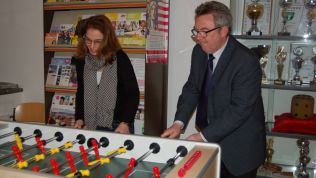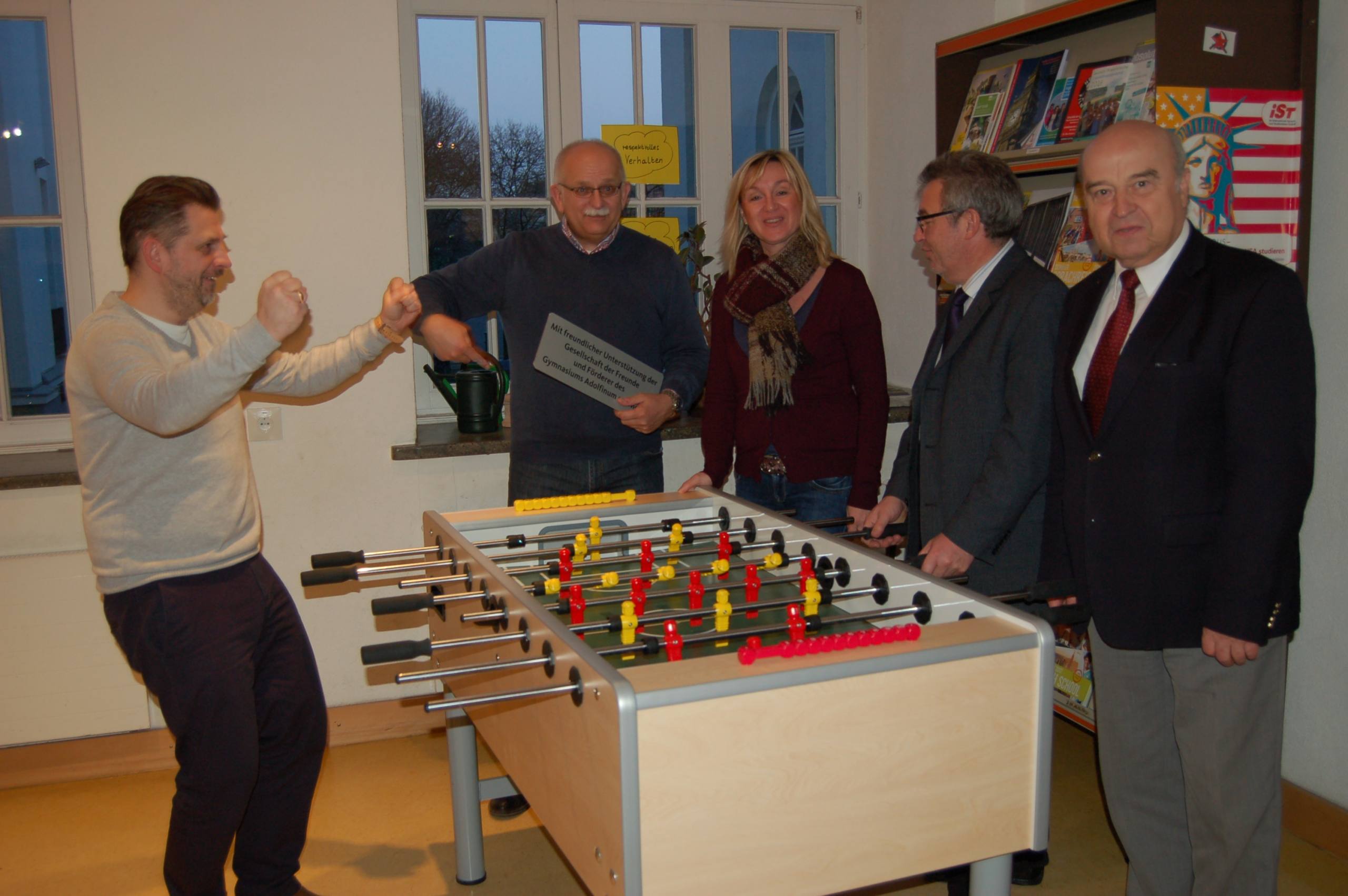 Zum Start ins EM Jahr 2016 hat der Förderverein zwei Kicker für die Pausenhallen gespendet. Der erste Kicker wurde bereits im Pausenbereich im Altbau aufgebaut und hat bisher rege Nutzung erfahren. Der zweite wurde nun im Pausenfoyer aufgestellt. Die Kicker sind, in schwerer Ausführung, extra für den Alltagseinsatz geeignet.